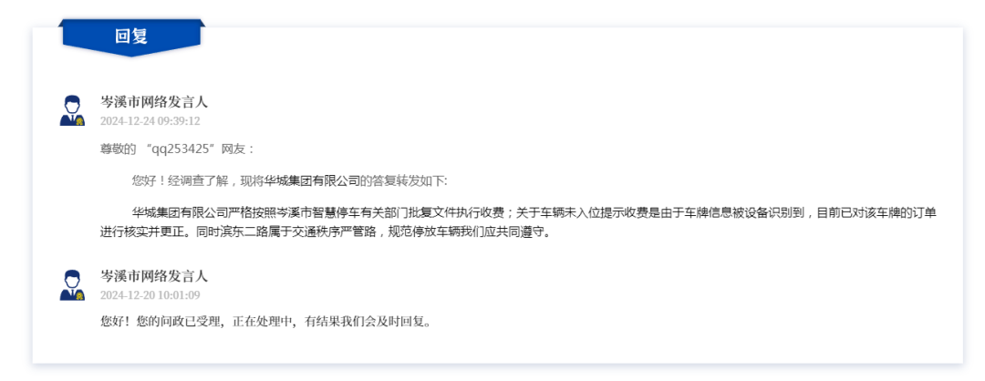 華城集團(tuán)有限公司嚴(yán)格按照岑溪市智慧停車有關(guān)部門批復(fù)文件執(zhí)行收費(fèi);關(guān)于車輛未入位提示收費(fèi)是由于車牌信息被設(shè)備識(shí)別到,目前已對(duì)該車牌的訂單進(jìn)行核實(shí)并更正。同時(shí)濱東二路屬于交通秩序嚴(yán)管路,規(guī)范停放車輛我們應(yīng)共同遵守。