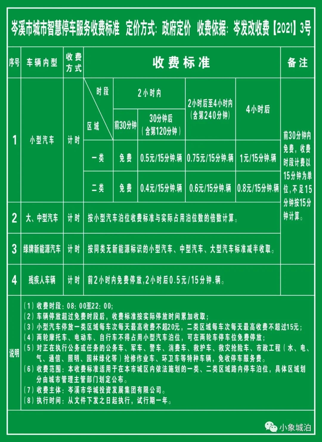 ▲岑溪市城市智慧停車服務(wù)收費(fèi)標(biāo)準(zhǔn)。