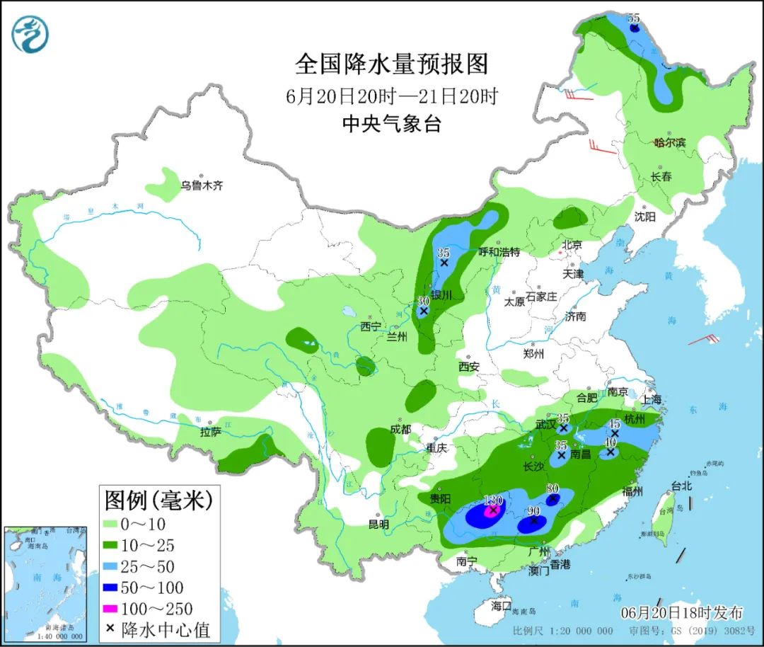 中央氣象臺20日18時(shí)發(fā)布暴雨藍(lán)色預(yù)警,預(yù)計(jì)20日20時(shí)至21日20時(shí),廣西北部、廣東北部、湖南南部、江西南部和北部、福建北部、浙江中南部、安徽南部、湖北東南部以及內(nèi)蒙古河套及周邊地區(qū)、寧夏、黑龍江西北部等地部分地區(qū)有大到暴雨,其中,廣西東北部等地局部地區(qū)有大暴雨。