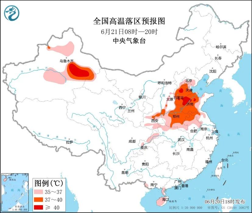 中央氣象臺20日18時(shí)繼續(xù)發(fā)布高溫橙色預(yù)警,預(yù)計(jì)21日白天,河北中南部、北京大部、天津、山東中西部、河南、安徽中北部、江蘇北部、湖北北部、山西中部、陜西中南部、新疆北疆盆地和南疆盆地、海南島大部等地有35~39℃高溫天氣,其中,河北中南部、山東北部等地局地可達(dá)40℃以上。