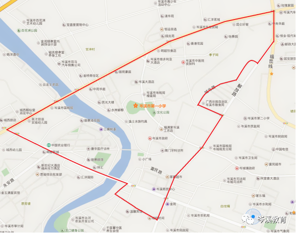 (聯(lián)系電話:0774-8222604) 1.從玉梧大道岑溪大橋北面起往梧州方向至北環(huán)路交匯處右面地段。具體包括:中苑片區(qū)、舊教育印刷廠、舊檢察院、舊法院,舊車站、糖煙酒公司、日雜公司、舊百貨公司倉庫,舊醫(yī)藥公司、香港花園、城市花園、怡景路片區(qū),新華書店、曇錢村、梨山片區(qū),工信局(原經(jīng)貿(mào)委),北山路片區(qū),人民醫(yī)院、中醫(yī)院、疾控中心、一幼、科技局,舊電影公司、圖書館、原文化局、百匯大夏、市委、市政府、工會(huì)、舊農(nóng)業(yè)局、南方市場片區(qū)。 2.從玉梧大道與北環(huán)路交匯處至解放大道與城北路交匯處右面地段。包括:匯洋中央華庭、新義1-3巷片區(qū)。 3.從城北路2號沿城北路到大中路止,再沿大中路往解放大道交匯(紅綠燈)處右面地段。包括:政府宿舍區(qū)、城北路雙號、電力公司、原林工商。 4.從大中路與解放大道交匯點(diǎn)(紅綠燈)至人民廣場與廣南路交匯點(diǎn)(好鄰居商店)右面地段,包括:中心市場、樟木供銷社片區(qū),解放大道右邊居民、商貿(mào)城片區(qū)、水東街片區(qū)、紅樓小區(qū)、舊郵政、舊電信、舊移動(dòng)公司。 5.從解放大道與廣南路交匯點(diǎn)(好鄰居商店)沿廣南路往濱江三路交匯處右邊片區(qū)。包括:廣南路(雙)2--22號、人民廣場后的商鋪、義州大道(單)129--131號、廣場一街1--12號。 6.過了義州大橋沿義州大道到玉梧大道往岑溪大橋右面地段。包括:永寧路、信宇明都、麗景灣、南門路、湖溪路、富裕街。 7.屬市一小地段的必須是市區(qū)戶口。甘沖社區(qū)居民和菜園居民不屬市一小招生范圍。 8.英才雙語實(shí)驗(yàn)幼兒園和國稅局所在片區(qū)。(聯(lián)系電話:0774-8224031) 1.城北路單號,城北路1號石油公司宿舍,城北路3號,舊建行宿舍,老干局,糧食局,武裝部,老干街片區(qū); 2.解放大道2號,人民銀行,工商銀行,新華書店舊宿舍,農(nóng)行,生資,煙草局,中國人壽保險(xiǎn),財(cái)產(chǎn)保險(xiǎn),二幼,岑城衛(wèi)生院,興業(yè)街,康樂街,地礦宿舍片區(qū); 3.公安局,原廣視局,樟木衛(wèi)生院,市政局,林業(yè)局,市供銷社,交通局,原技術(shù)監(jiān)督局,司法局,財(cái)政局,房產(chǎn)局,城東一巷、二巷、三巷片區(qū); 4.金坊花園,舊德州漢堡,舊金源超市,民政局,人社局,衛(wèi)計(jì)局,義洲一、二、三、四、五街,五谷廟,農(nóng)商行總行,木材公司,水電局,東升路,大大商場,岑城鎮(zhèn)政府,阿里香大酒店片區(qū); 5.城東路與興寧路之間:義洲大道295、286號以內(nèi),城東路東一、二、三街,氣象局,興寧路單號,康樂羽毛球館,富民路198-1號以內(nèi),富民路159號以內(nèi),金蘋果二幼,舊南環(huán)市場,升平街,婦幼保健院片區(qū); 6.福星花園,城東三巷、四巷、五巷,舊工商局宿舍,華建水泥廠宿舍,大中路單號125號以內(nèi)片區(qū); 7.大中路106號以內(nèi),永樂路單號,城北一路、二路,舊土地局宿舍,教育局片區(qū); 9.龍井、樟木、菜園居民不在招生范圍之內(nèi)。(聯(lián)系電話:0774-8212118) 1.北環(huán)大道42號(百花仙子電動(dòng)車行)至玉梧大道汽車站紅綠燈東邊區(qū)域。 ⑴含新興路,新興1、2街,僑新路,僑新1-6街,民興1-4街。 ⑵主要單位及小區(qū):汽車總站、農(nóng)發(fā)行、大地財(cái)保、郵政儲(chǔ)蓄、路政執(zhí)法、岑溪市公安局特巡警大隊(duì)、民政婚姻登記處、岑城鎮(zhèn)政務(wù)中心、原環(huán)保局、新興小區(qū)。 主要單位及小區(qū):現(xiàn)代城、食品公司宿舍、城北派出所、御景豪庭、學(xué)府千城、恒業(yè)綠城、嘉和園、交警大隊(duì)、芳村、恒祥小區(qū)、廉租房。(聯(lián)系電話:0774-8223099) 1.樟木社區(qū)管轄區(qū)的適齡兒童。原樟木社區(qū)戶籍居民因征地拆遷在探花一、二、三街居住并落戶,造成戶籍地址變更的,憑樟木社區(qū)證明材料確認(rèn)后,可以到岑溪市第五小學(xué)就讀。 2.富民路196號往東方向至富民路328號;義洲大道龍井轉(zhuǎn)盤往探花車站方向至義洲大道郵政局對面596號九門寨石鍋魚(大四川魚莊)左側(cè)片區(qū)(包括幸福路、幸福一街)。 3.義洲大道郵政局對面596號往岑羅路方向至北環(huán)大道596號(兩廣二手車行)左側(cè)片區(qū)。 4.從北環(huán)大道596號(兩廣二手車行)往新車站轉(zhuǎn)盤方向至北環(huán)大道松香廠東門(北環(huán)大道222號)兩側(cè)的區(qū)民(包括盛世東方、嶺南人家、公園里)。 5.從永樂路2號至22號(雙號),大中路108號左側(cè)片區(qū),沿街向南至福星花園小區(qū)對面左街; 舊三鳥生鮮批發(fā)零售點(diǎn)(碧玉家園小區(qū))向南至富民路196號(包括興寧二街 、興寧三街)。(聯(lián)系電話:0774-8225466) 1.從岑溪中學(xué)大門對出的文化一路西與玉梧大道交匯處路口到濱江一路路口止,往北至岑興高速路(南面)止。含濱江一、二路,濱東一、二、三街,濱東一、二路,金橋商住區(qū)一巷,文化一路,育才路。 2.文化一路為界,往西至濱江一路路口至金灣順景小區(qū)止,劃線范圍內(nèi)的所有樓盤。(聯(lián)系電話:0774-8237335) 1.東面以高速路引路為界,南面以玉梧大道為界,西面以文化一路為界(岑溪中學(xué)大門),北面以岑梧高速為界(至古塘村村委止),包含劃線范圍內(nèi)的所有小區(qū)的常住居民; 2.南梧高速西出口引路至汽車站紅綠燈東邊區(qū)域,出口面向?qū)