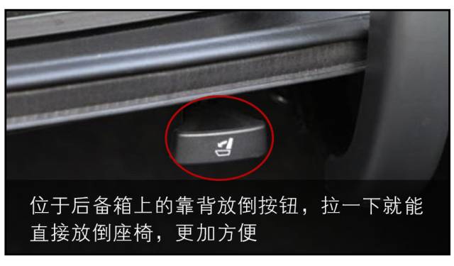 后排座椅放倒的實用性不必多說,能大大提升你的汽車裝載能力。而后排座椅放倒按鈕的設(shè)計比較多樣化,小編覺得設(shè)置在后備箱內(nèi)的,是最便利的,這樣你在裝運大件物品時,就不需要專門跑去后排放。