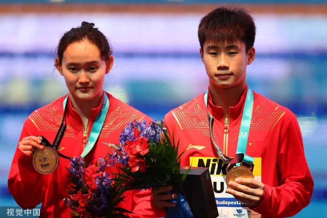 1日,在國際泳聯(lián)第19屆世界游泳錦標(biāo)賽跳水項目混雙10米臺比賽中,中國組合任茜/段宇奪得金牌。