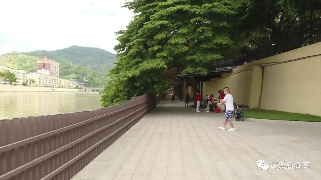 7月1日,記者來(lái)到濱江二路附近看到,一排排樹木沿著河岸生長(zhǎng),形成一道天然的“綠色長(zhǎng)廊”,綠蔭下碧波蕩然,一些市民群眾正在岸邊釣魚、聊天,大家三兩成群,有的唱歌、有的跳舞,有的帶著小孩來(lái)這里玩耍嬉戲,一幅美好和諧的城市生活畫卷正在徐徐展開。