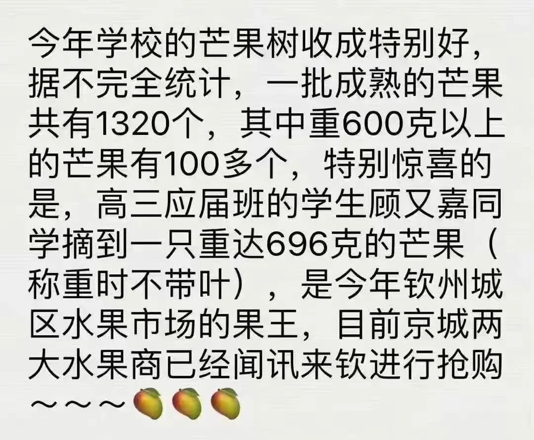 今年學(xué)校的芒果樹收成極好