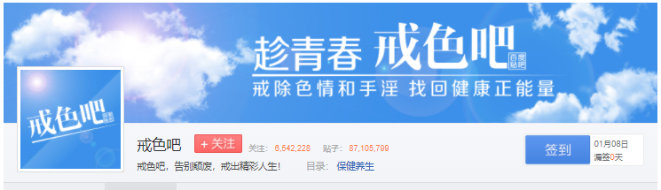 “空即是色,色即是空?!痹谖寤ò碎T的貼吧中,人數高達650多萬的“戒色吧”引起了網友的關注。