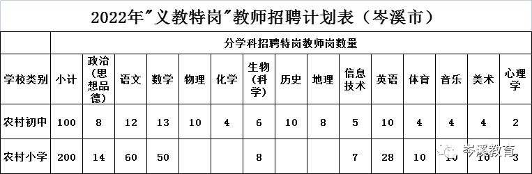 ? ? ? 岑溪市計(jì)劃招聘農(nóng)村中小學(xué)特崗教師300名。具體分學(xué)科崗位招聘計(jì)劃詳見下表: