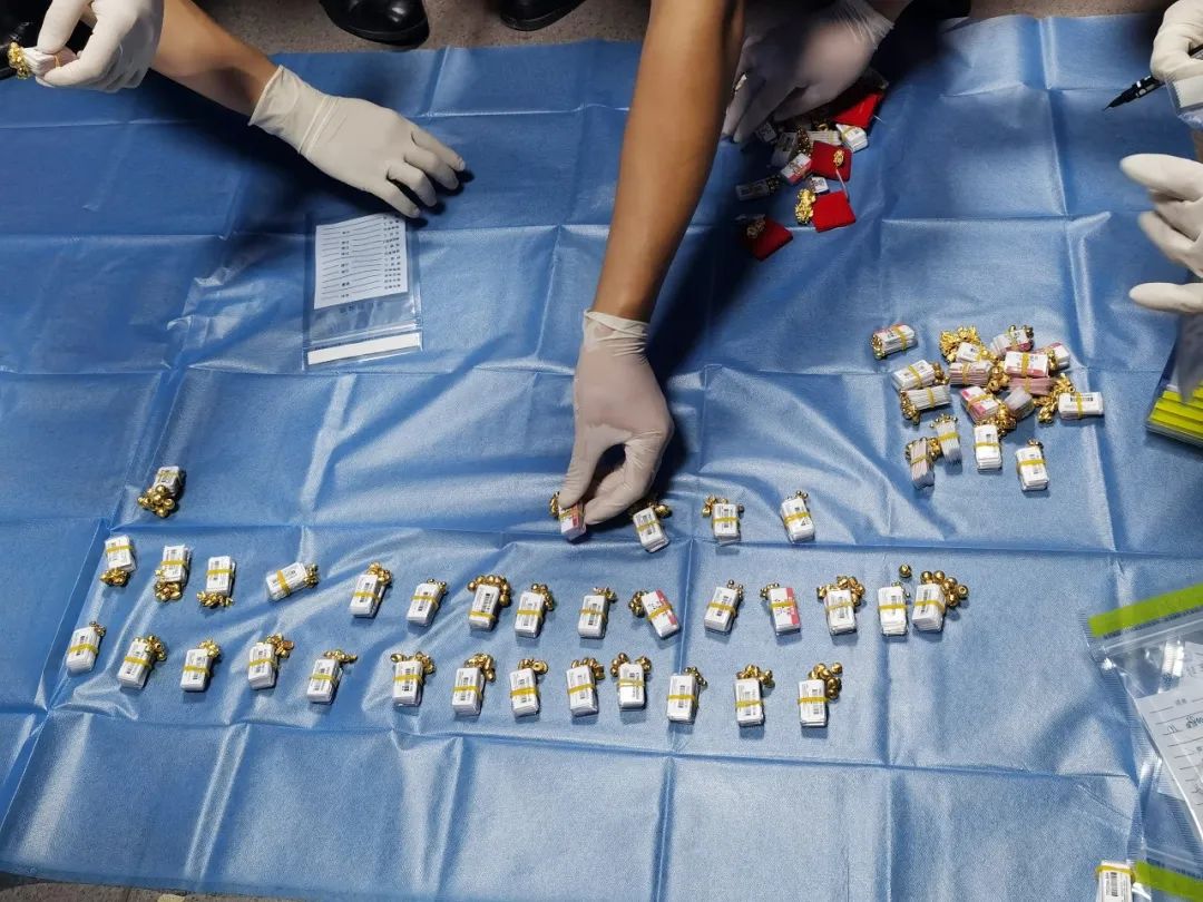 ▲ 民警對涉案財物進(jìn)行清點