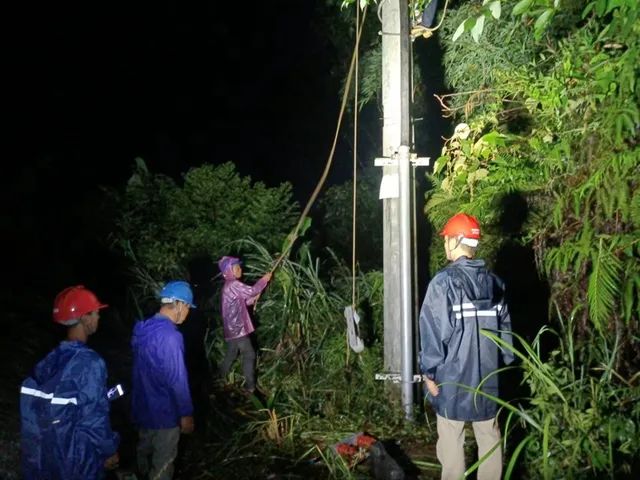 受臺風(fēng)“暹芭”影響,馬路鎮(zhèn)楊葉村10千伏路林線發(fā)生故障,岑溪供電公司馬路供電所黨員突擊隊(duì)開展搶修復(fù)電工作。沈虹宇攝