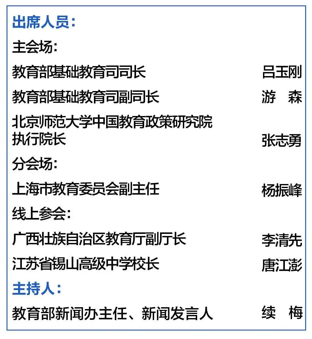7月5日,教育部舉行“教育這十年”“1+1”系列發(fā)布采訪活動的第七場新聞發(fā)布會,聚焦黨的十八大以來普通高中教育改革發(fā)展成效。發(fā)布會主會場設(shè)在教育部,分會場設(shè)在上海市。本場發(fā)布會采用線上+線下的方式舉行。