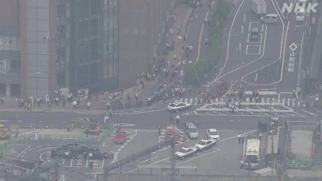 報(bào)道稱,現(xiàn)場出現(xiàn)2聲槍響,一名男子在現(xiàn)場被控制。據(jù)日本自民黨安倍派的相關(guān)人員稱,安倍晉三胸部遭槍擊,已被救護(hù)車送往醫(yī)院。
