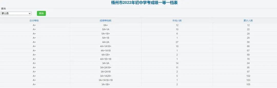 從”梧州市2022年初中學(xué)考成績一等一檔表“看到
