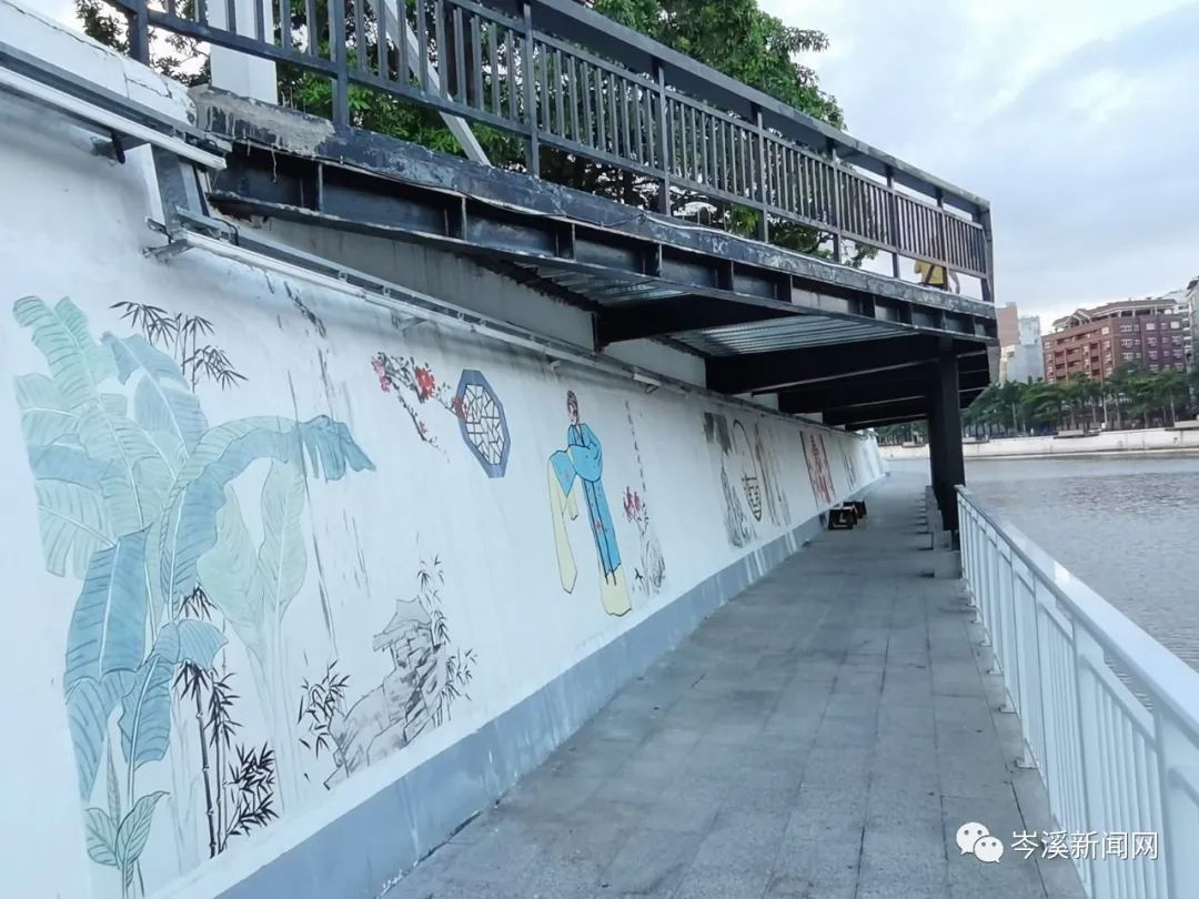 如今,走在義昌江岑溪大橋至義州大橋全長820米河堤上,便如同進入到一幅畫卷,市美術家協會的畫師們在河堤墻壁上揮毫作畫,將岑溪詩詞、牛娘戲、孝道等元素融入到墻繪畫卷中,與波光粼粼的義昌江相互映襯,給人強烈的視覺沖擊,成為推進文旅融合的獨特載體,引來不少市民、游客駐足“打卡”。
