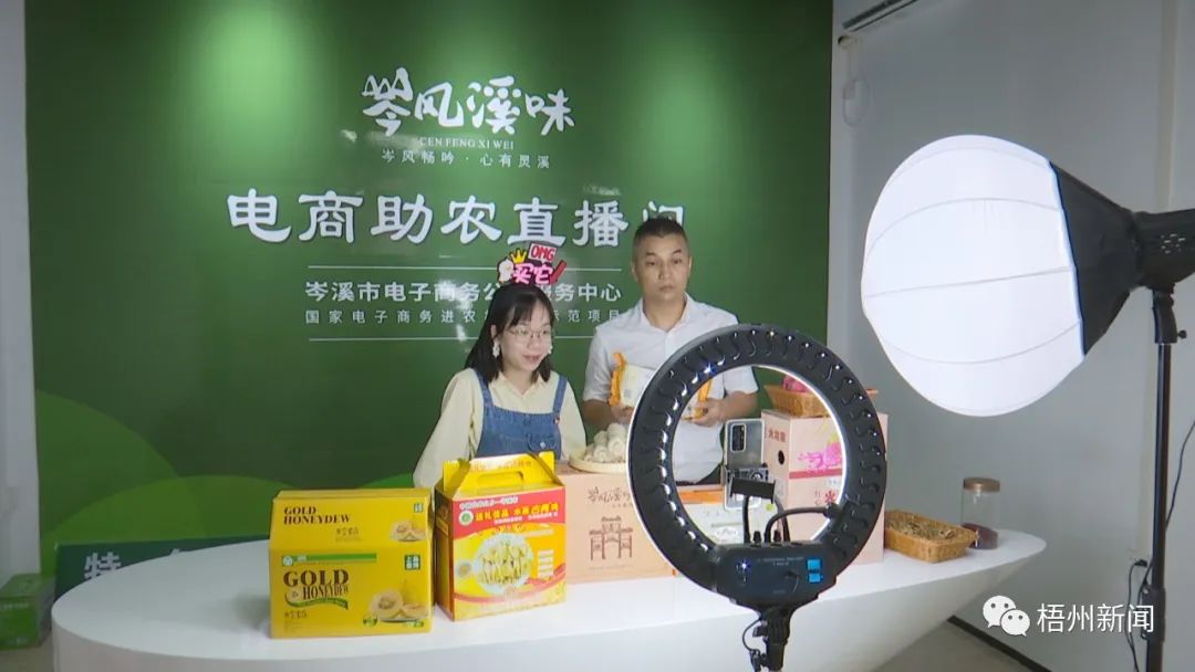 在岑溪市電子商務(wù)服務(wù)中心,當(dāng)?shù)氐奶厣r(nóng)產(chǎn)品都匯集到這里進(jìn)行集中展示,宣傳,線上還做了岑溪特產(chǎn)館店鋪,電商主播正通過(guò)直播平臺(tái)帶貨,三堡米粉、古典雞、黃金蜜露等農(nóng)產(chǎn)品,吸引了不少網(wǎng)友在線觀看、搶購(gòu)。據(jù)統(tǒng)計(jì),2021年8月至今年6月底,岑溪市農(nóng)副產(chǎn)品網(wǎng)絡(luò)銷(xiāo)售訂單量約為17萬(wàn)件,銷(xiāo)售金額650多萬(wàn)元。