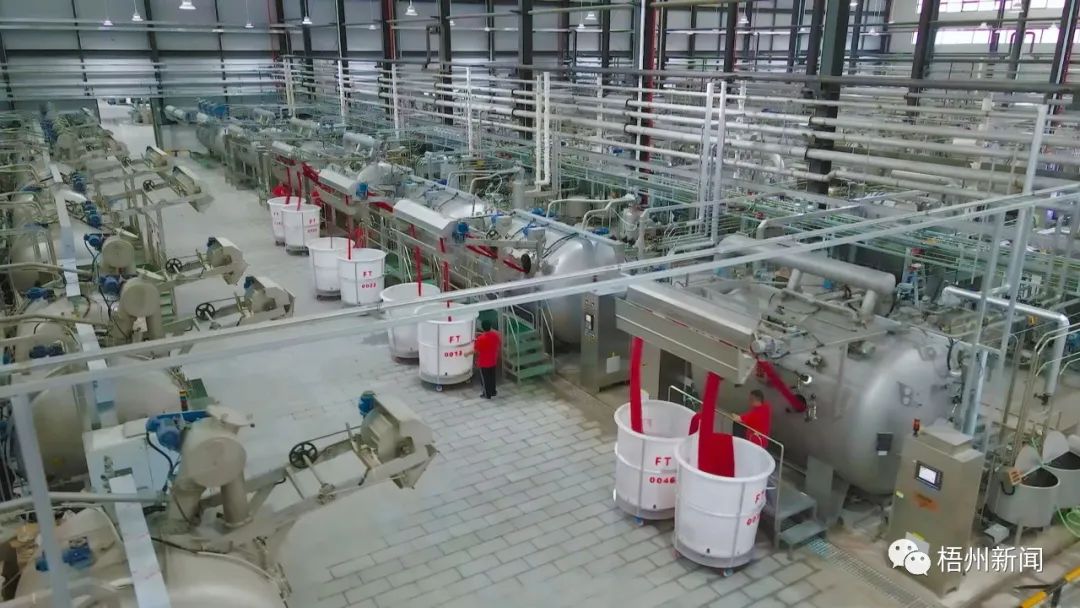 記者 周岐?。骸白鳛樽灾螀^(qū)‘雙百雙新’項(xiàng)目,泰森新紡織產(chǎn)業(yè)集聚區(qū)項(xiàng)目一期工程在今年5月底已經(jīng)試投產(chǎn)。我現(xiàn)在就在5號(hào)車(chē)間,在這里目前有全廣西唯一的一套拉沃全自動(dòng)輸送系統(tǒng),通過(guò)這個(gè)系統(tǒng)可以給車(chē)間77臺(tái)染色機(jī)的染料和助劑提供精準(zhǔn)輸送,在5號(hào)車(chē)間正式運(yùn)行后,產(chǎn)能可達(dá)到每天120噸,可實(shí)現(xiàn)年產(chǎn)值4億元 ?!?/span>