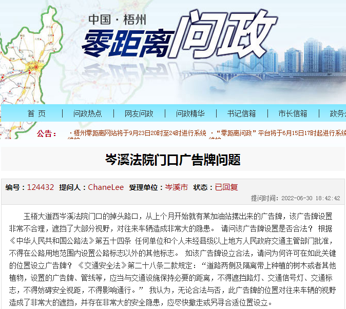 ▲網(wǎng)友問政截圖