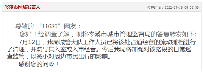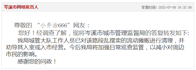 調(diào)查了解,7月6日,岑溪市城市管理監(jiān)督局對此答復(fù)表示: