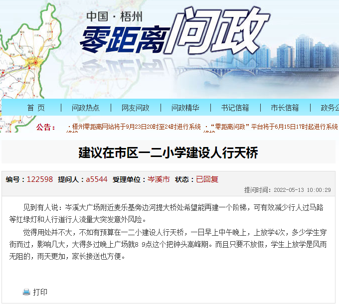 近日,岑溪市自然資源局對此答復表示:岑溪有相關(guān)建設(shè)人行天橋的城市規(guī)劃,但未明確具體位置,如果建設(shè)人行天橋由城管部門負責實施。