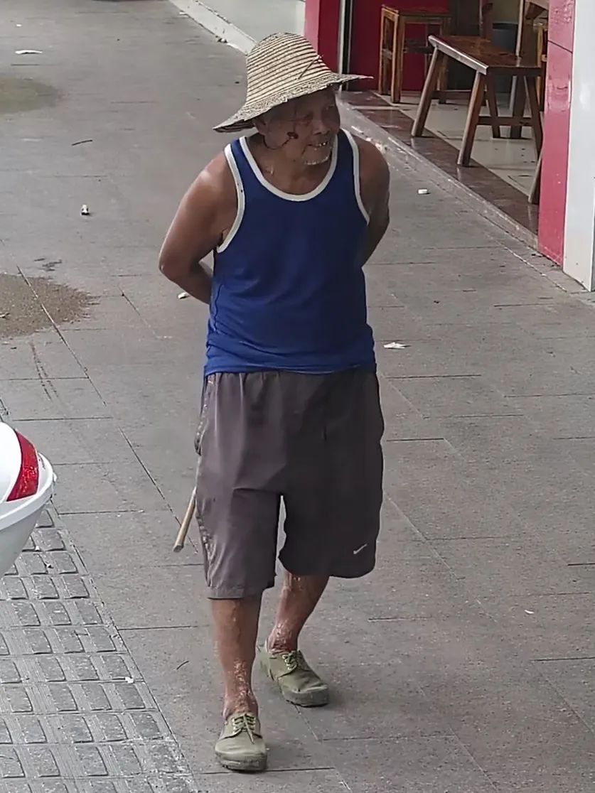 高美新,男,岑溪市岑城鎮(zhèn)大錦村人,逃時著淺藍色長袖上衣,紅色短球褲,少許駝背。