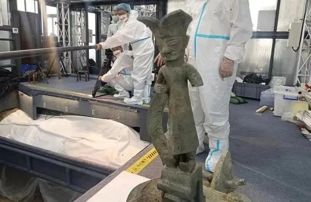 24日,四川廣漢三星堆遺址8號祭祀坑成功提取出1米多長的青銅神獸,重達近300斤。這是目前三星堆發(fā)現(xiàn)最大的動物造型青銅器。