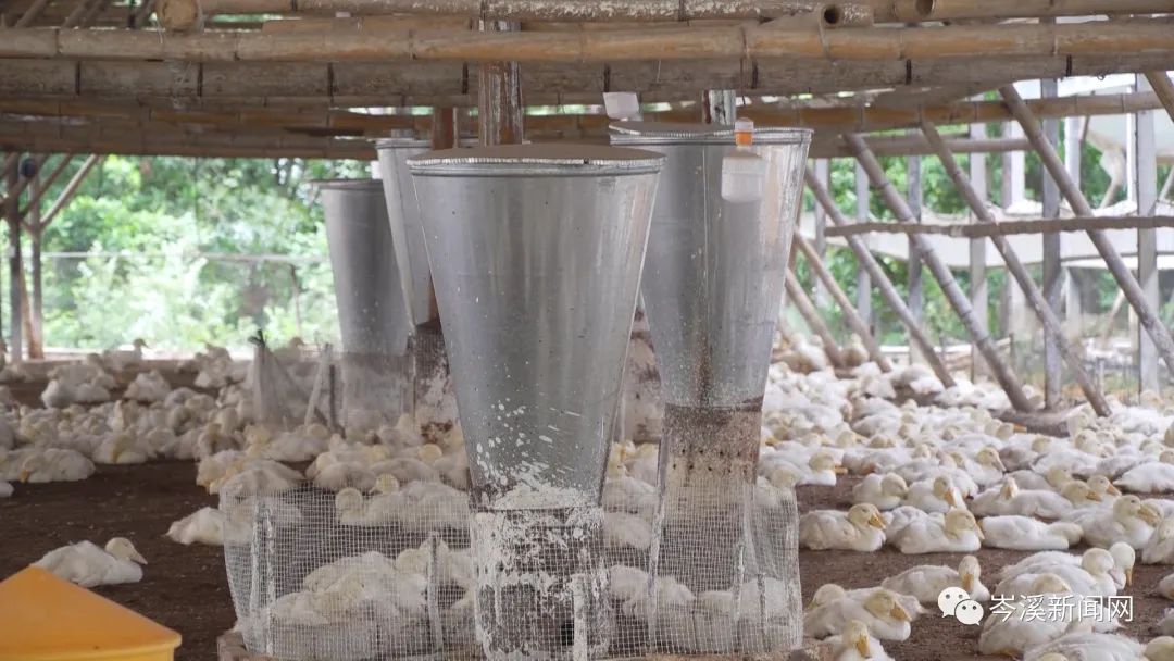 8月25日,記者來到大業(yè)鎮(zhèn)泗龍村林銘?zhàn)B殖場看到,大棚內(nèi)擠滿了一只只體態(tài)豐腴的櫻桃谷鴨,陣陣鴨叫聲打破了山林間的靜寂。養(yǎng)殖場負(fù)責(zé)人謝慶忠正忙碌著將飼料倒入自動上料機(jī),按下控制開關(guān)后,飼料就順著管道自動輸送到棚內(nèi)每個裝料桶,實(shí)現(xiàn)自動化喂養(yǎng),整個流程較傳統(tǒng)養(yǎng)殖更高效便捷。