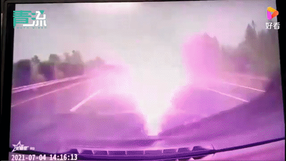 2021年7月4日,G92杭甬高速一輛行駛的SUV小車,一道雷電從車前劃過,導(dǎo)致車子立馬熄火。經(jīng)檢查,車輛右側(cè)反光鏡已經(jīng)破碎,行車記錄儀也因雷擊損壞。