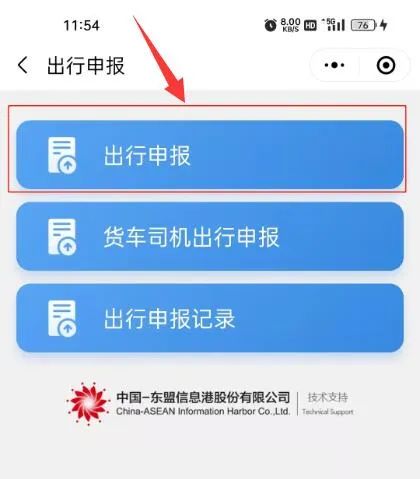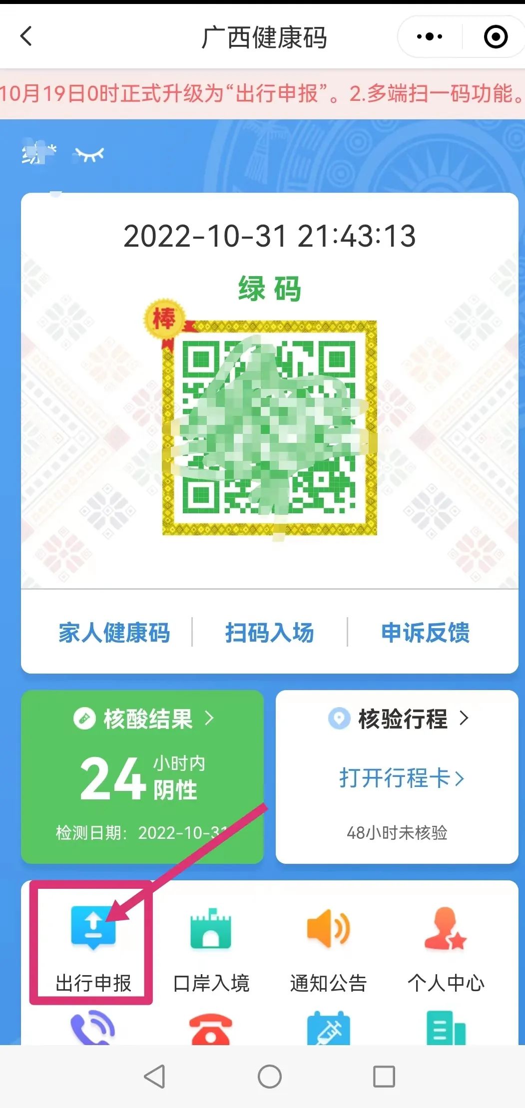 否則點(diǎn)擊“出行申報(bào)”按鈕,如圖所示。