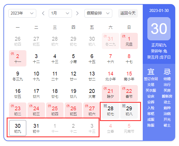 ,1月21日-1月27日放假調(diào)休共7天,崩潰的是放完假還要連上7天班…
