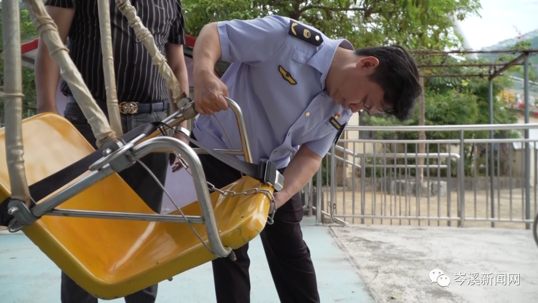 在東山游樂園,監(jiān)察人員查看大型游樂設(shè)施運(yùn)行是否正常,所使用的安全帶、安全卡扣以及防護(hù)措施是否完整有效,對檢查中發(fā)現(xiàn)的問題逐一提出整改意見,從源頭上保障特種設(shè)備安全,堅決遏制特種設(shè)備安全事故發(fā)生。