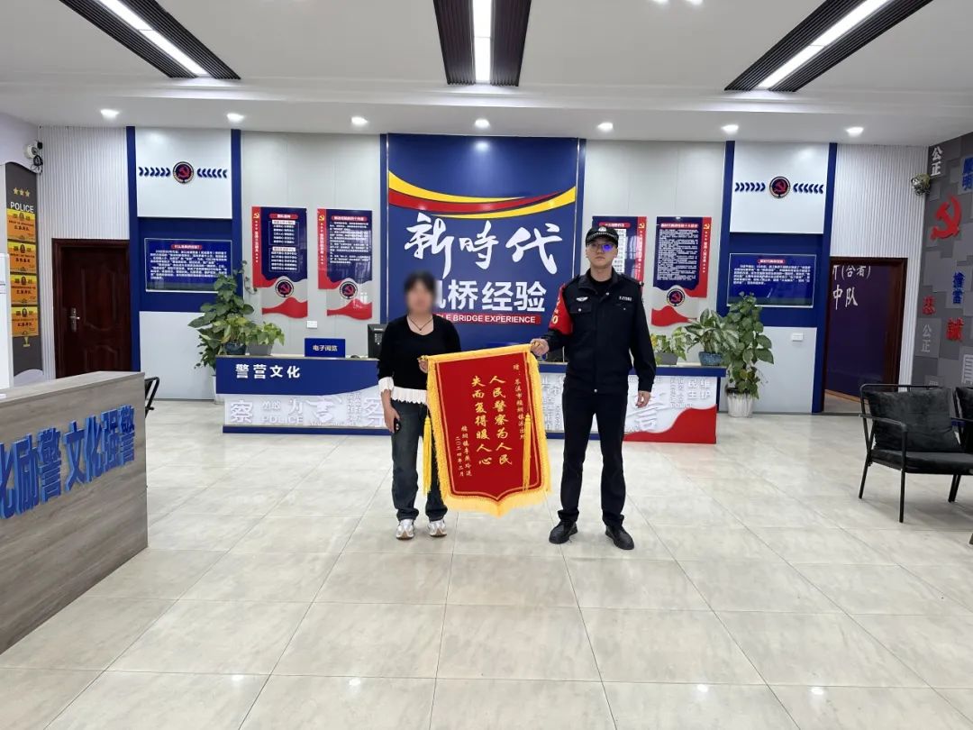2月19日,李女士在趕集日到鎮(zhèn)上購物時(shí)不慎丟失手機(jī),糯垌派出所接報(bào)后立即行動(dòng),多渠道調(diào)查,最終確定手機(jī)丟失的地點(diǎn),并將手機(jī)成功找回。為了表達(dá)感激之情,李女士給糯垌派出所送上一幅繡著“人民警察為人民,失物復(fù)得暖人心”的錦旗。