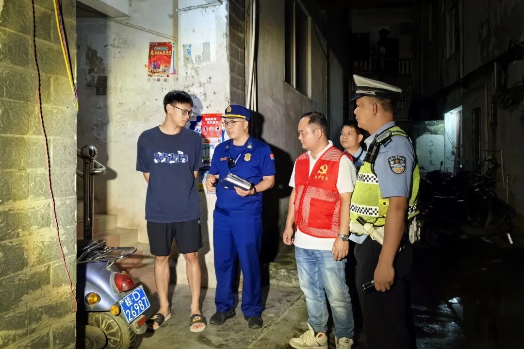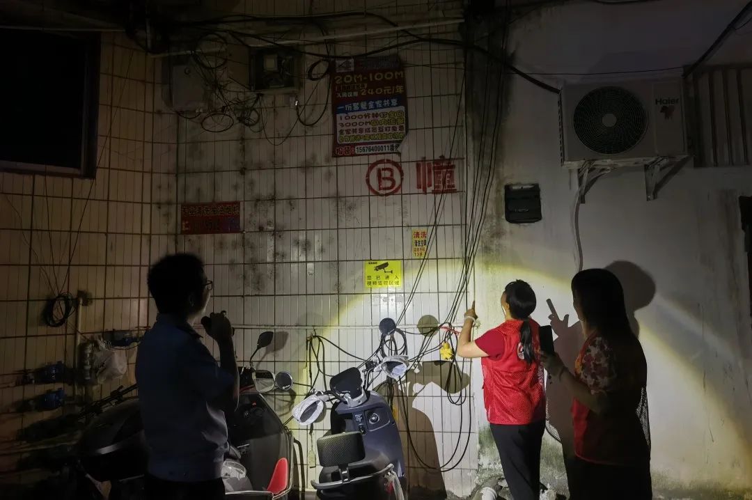 晚上8點整,村(社區(qū))干部、鎮(zhèn)包村工作組工作人員、綜治網(wǎng)格等基層力量組成夜查小組,以高層民用建筑、疏散通道、樓梯間、安全出口、自建房、“三合一”、沿街門店、夜間經(jīng)營使用場所為重點開展地毯式排查,按照“邊檢查、邊勸改、邊宣傳”的方式開展夜查行動,主要對電動自行車入戶充電、私拉電源線、違規(guī)停放、擅自改裝等情況進行嚴格檢查。