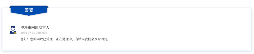 截至發(fā)稿時止,問政頁面進(jìn)展?fàn)顟B(tài)顯示已受理,但相關(guān)職能部門還未正式回復(fù)。