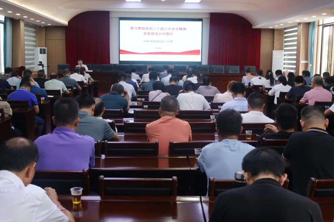 為深入學習貫徹黨的二十屆三中全會精神,著力推動全會精神深入人心、落地生根,9月12日,學習貫徹黨的二十屆三中全會精神岑溪市宣講團宣講報告會(糯垌鎮(zhèn)專場)順利舉行,市委宣講團成員、市農(nóng)業(yè)農(nóng)村局四級調研員元思勇作宣講。鎮(zhèn)在家班子領導、全體干部職工、各村(社區(qū))支書、鎮(zhèn)直單位負責人以及駐村工作隊共137人參加報告會。