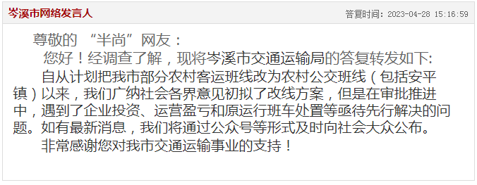 ▲岑溪市筋竹鎮(zhèn)無法通公交車的答復(fù)