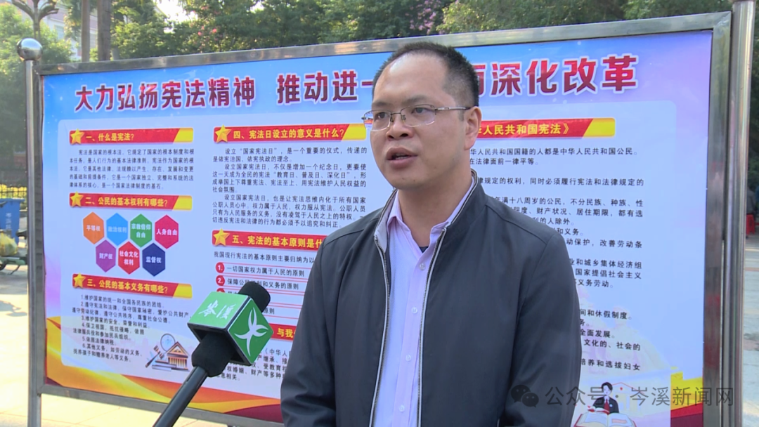 市司法局副局長 韋延:“本次活動通過多種形式向市民普及憲法知識,將憲法知識送入市民的心中,讓法治精神生根發(fā)芽,從而推動全市形成尊法學(xué)法守法用法的良好氛圍。我們希望廣大市民能夠積極參與,了解更多的法律知識,提高自身法律素養(yǎng)和法治意識,為共同建設(shè)平安岑溪、法治岑溪貢獻自己的力量。”