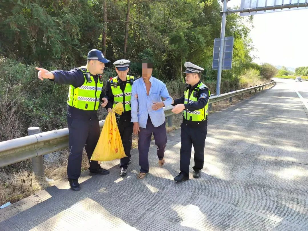 接到警情后,執(zhí)勤警員馬上前往報(bào)警地點(diǎn)巡查,當(dāng)巡邏至佛子口隧道口時(shí),發(fā)現(xiàn)一名老人在車道內(nèi)逆向行走,時(shí)不時(shí)左右張望,面對過往的車輛無動于衷,過往車輛紛紛避讓。執(zhí)勤警員立即將車停靠至應(yīng)急車道,快速將老人帶至安全地帶。詢問過程中,老人一直沒有回話,只是用手勢比劃,無法正常溝通。為安全起見,執(zhí)勤警員把老人攙上警車,將老人帶離高速公路并送至中林村村委處。