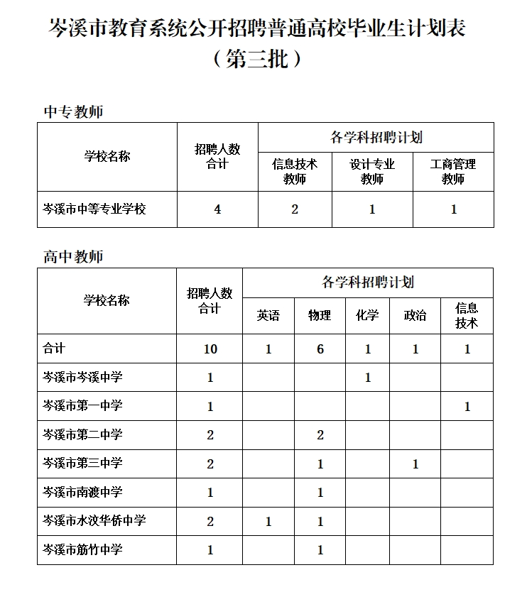 本批招聘專任教師人數(shù)65人,具體崗位計劃見附件1《岑溪市教育系統(tǒng)公開招聘普通高校畢業(yè)生計劃表》(第三批)、附件2《岑溪市教育系統(tǒng)公開招聘普通高校畢業(yè)生計劃匯總表》(第三批)。