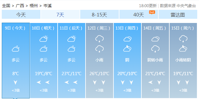 今天起岑溪?dú)鉁赜兴厣?/span>