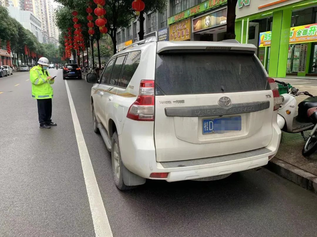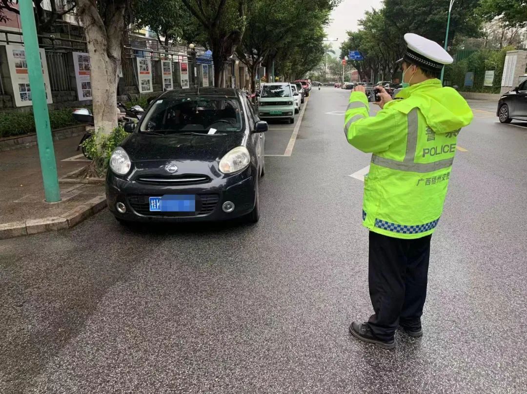 梧州公安交警采取動、靜結(jié)合的巡查管控措施,加大對醫(yī)院、商圈、食肆、市場等人車密集的道路周邊巡邏管控力度,對違停車輛駕駛?cè)嗽趫龅?,勸?dǎo)其在停車線內(nèi)有序停放或勸其駛離。對不在現(xiàn)場,開具違停告知單,對嚴(yán)重影響交通的一律進行清拖。