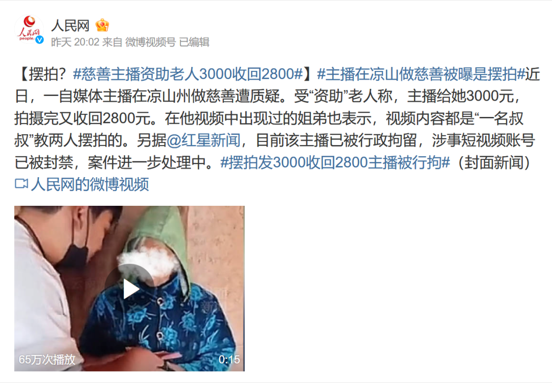 發(fā)布過他給老人發(fā)放現(xiàn)金資助的視頻