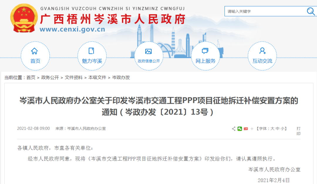 項(xiàng)目征地補(bǔ)償和地上附著物搬(移)遷補(bǔ)償標(biāo)準(zhǔn),按《岑溪市人民政府辦公室關(guān)于印發(fā)岑溪市交通工程 PPP項(xiàng)目征地拆遷補(bǔ)償安置方案的通知》(岑政辦發(fā)〔2021〕13 號(hào))執(zhí)行,被征地農(nóng)業(yè)人口安置采用貨幣補(bǔ)償方式。