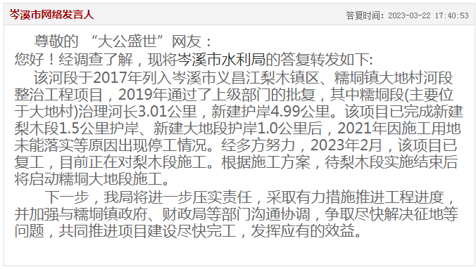 直至今年3月22日,才等來(lái)岑溪市水利局的答復(fù):