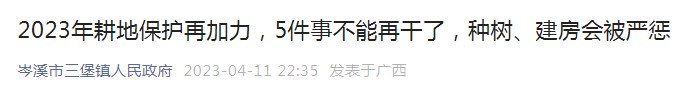 加強(qiáng)耕地用途管制的政策出臺后,對一般耕地種樹栽樹也提出了明確的限制要求,比如不得違規(guī)超標(biāo)準(zhǔn)在鐵路、公路等用地紅線外,以及河渠兩側(cè)、水庫周邊占用一般耕地種樹建設(shè)綠化帶;未經(jīng)批準(zhǔn)不得占用一般耕地實(shí)施國土綠化,等等。在2023年加強(qiáng)耕地保護(hù)的新形勢下,大家還是不要觸犯這一規(guī)定。