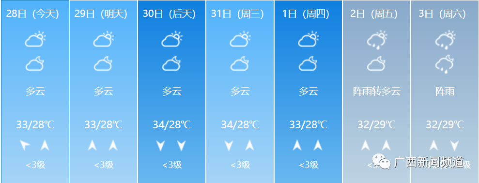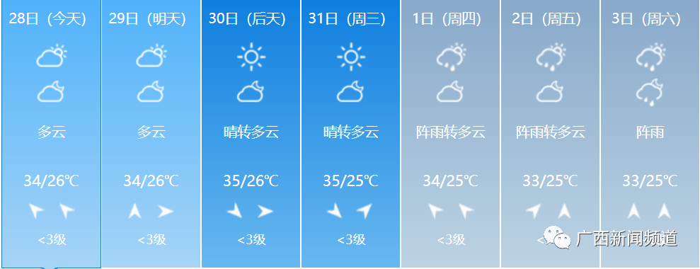 氣象專家預計,本輪升溫過程,最高氣溫將出現(xiàn)在5月30日。5月31日之后,隨著副熱帶高壓的減弱以及臺風“瑪娃”的遠離,廣西最高氣溫會有所緩解。