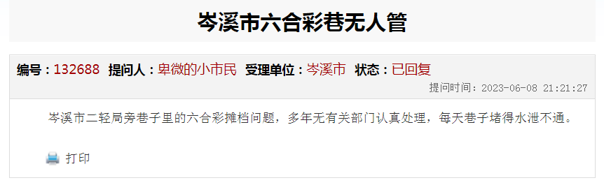 岑溪市二輕局旁巷子里的六合彩攤檔問題,多年無有關(guān)部門認(rèn)真處理,每天巷子堵得水泄不通。