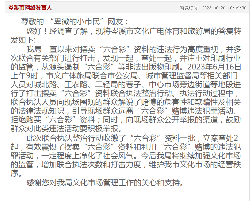 有網(wǎng)友反映二輕局附近有人擺賣六合彩資料