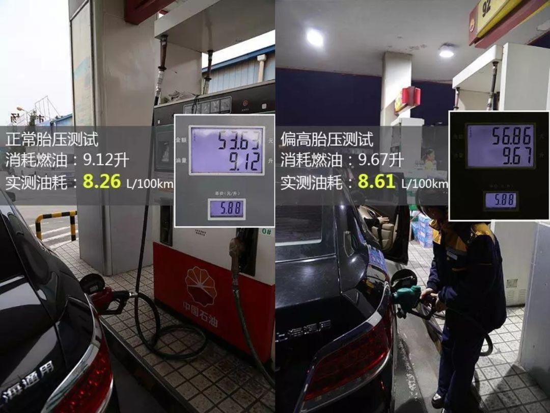 但測試結(jié)果與常識(shí)完全相反:高胎壓(3.1bar)百公里油耗是8.41L,正常胎壓(2.5bar)百公里8.26L。