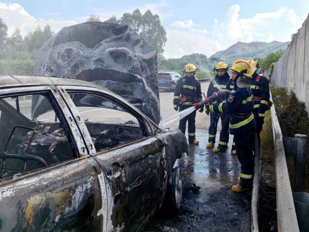 一轎車(chē)發(fā)生火災(zāi),無(wú)人員被困。