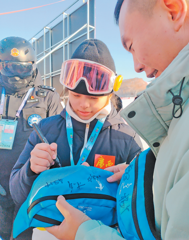 ▲甘佳佳為粉絲簽名(圖源廣西體育)