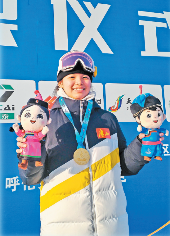 ▲廣西選手甘佳佳站上最高領(lǐng)獎(jiǎng)臺(圖源廣西體育)